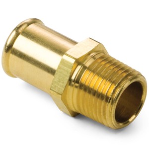 Low pressure air, fuel, and oil applications. Generally used for automotive, light truck, and small engine fuel lines. Made from CA360 brass. Used with 54-2xx, 54-6xx*, 54-7xx*, H057, H100, H101, H105*, H115*, and H201. Assembly involves sliding clamps over hose, inserting the barbed end, and tightening the band clamp.