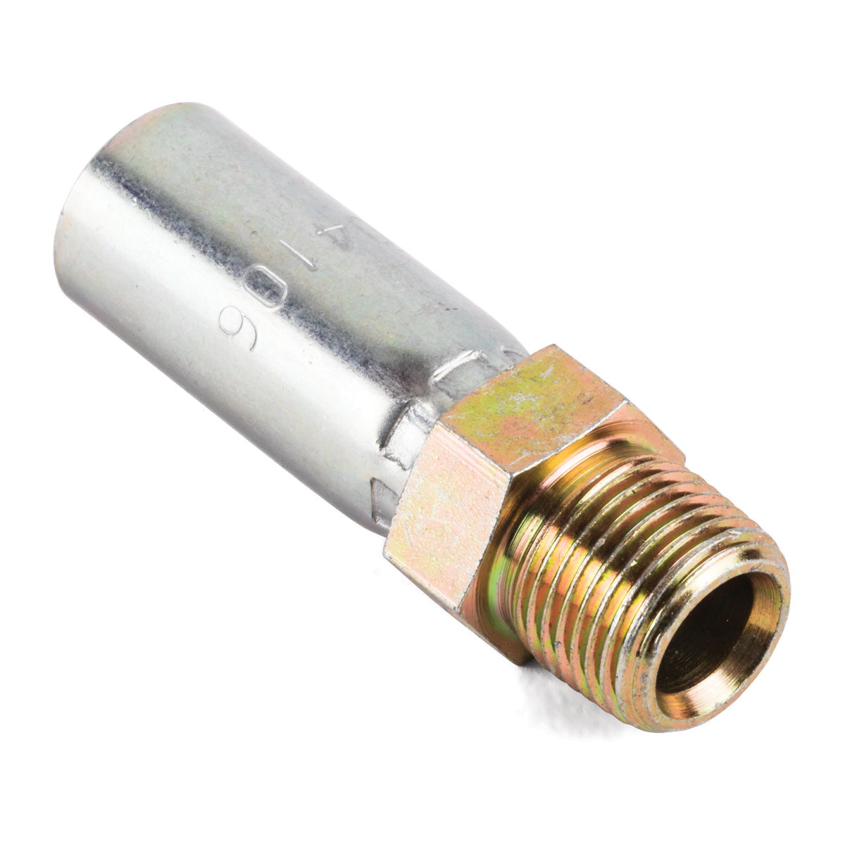 Medium pressure hydraulics applications. Compatible with K30CT, K3130, K37AL & K37TL hoses. Pressure determined by maximum working pressure for the hose. Carbon steel construction with clear trivalent zinc plating. Features straight sided full-body crimping for better routing in assemblies. Assemble with K100, K300, K500.