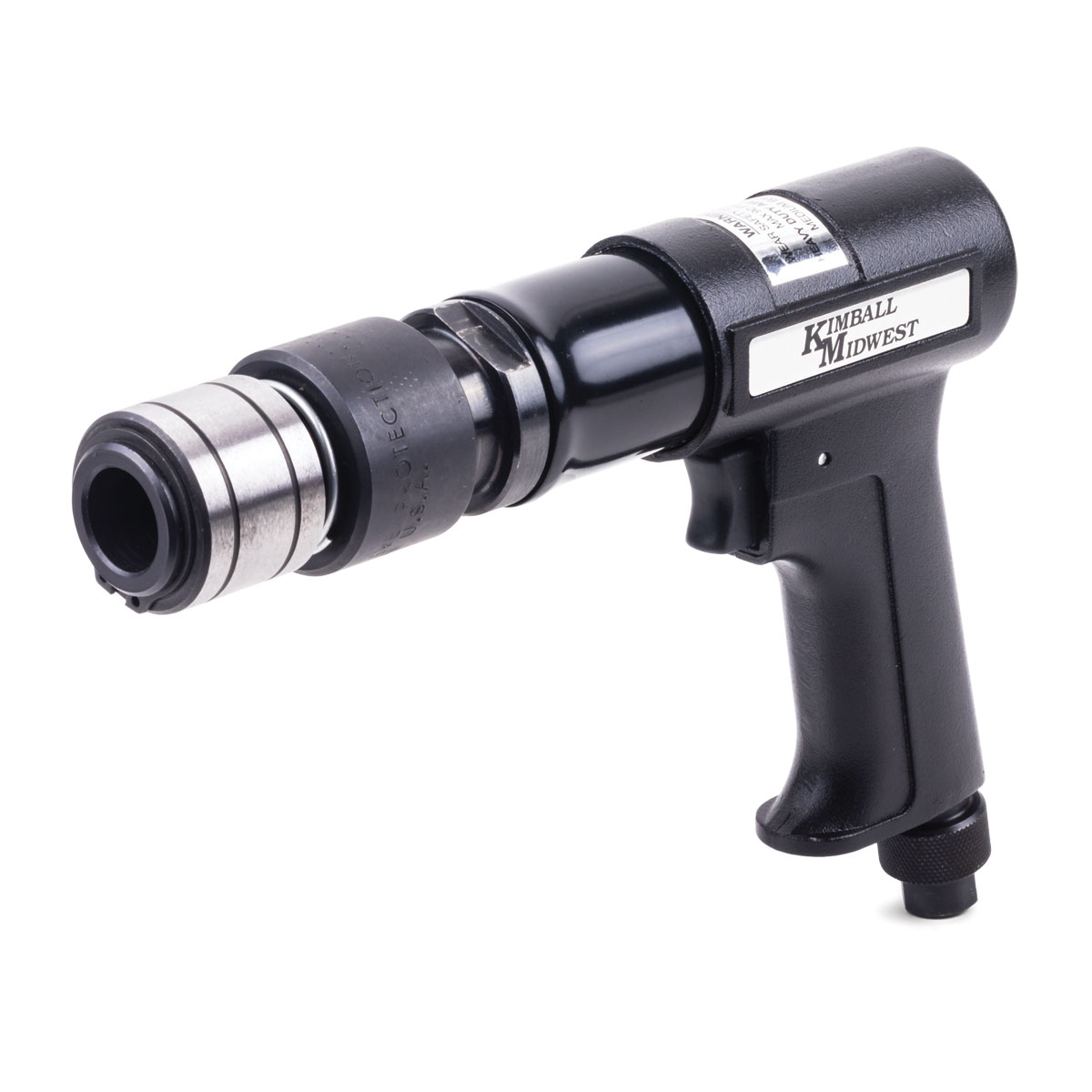 POWERFUL IMPACT HAMMER GUN offers pneumatic performance for chisels, punches, and needle scalers. Features 3,000 blows per minute and a 2-1/2" piston stroke. Lightweight at 3.25 pounds with low vibration for comfort. Variable speed control enhances precision. Ideal for heavy-duty applications. MADE IN THE U.S.A.