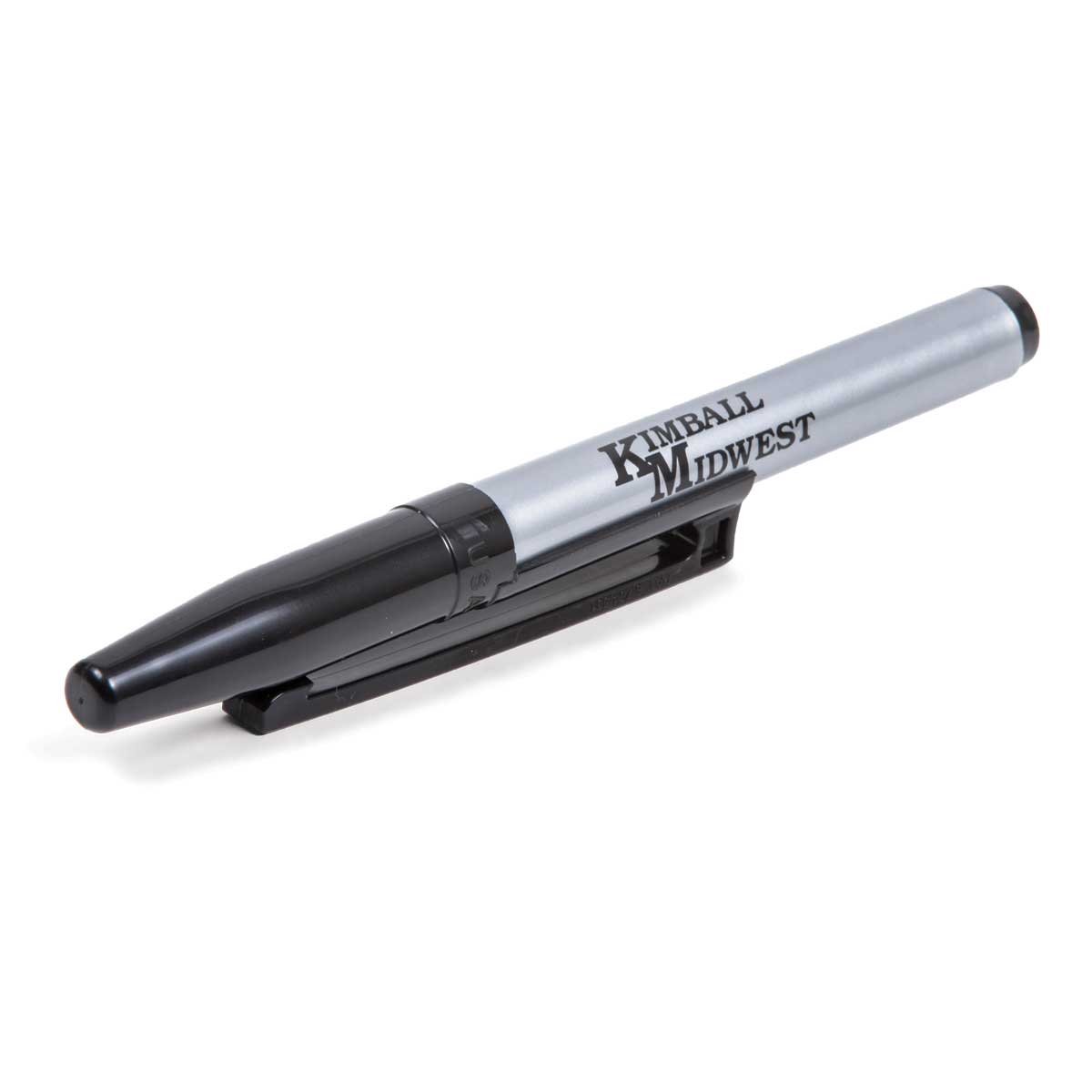 INDUSTRIAL FINE TIP PERMANENT MARKER features industrial ink and a heavy-duty nib for lasting marks on various materials. The patented REVERSE CLIP HOLSTER CAP allows for easy attachment to belts or pockets, enabling one-handed use. The HEAVY-DUTY TIP withstands rough surfaces like lumber and steel, ensuring durability. PREMIUM INK resists fading and maintains functionality even after 72 hours uncapped. MADE IN THE U.S.A.