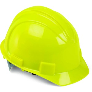 4-POINT RATCHET NYLON SUSPENSION for comfort and adjustability. UNIVERSAL ONE-SIZE-FITS-ALL design reduces inventory. LIGHTWEIGHT POLYETHYLENE CONSTRUCTION ensures protection and comfort. UNIVERSAL ACCESSORY SLOTS for hearing and face protection. SOFT FOREHEAD GUARD for extended use. HIGHLY VISIBLE YELLOW enhances safety. MEETS ANSI Z89.1-2009 TYPE 1 - CLASS G & E STANDARDS. MADE IN THE U.S.A.