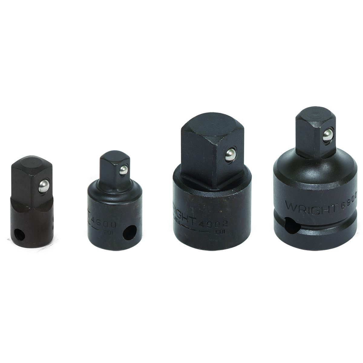 SPACE-SAVING ADAPTERS designed for tight spaces with a HIGH TORQUE IMPACT CONSTRUCTION suitable for mini pneumatic impact tools. STACKABLE for additional drive reduction. TOUGH & DURABLE, precision forged from Chrome-Moly alloy steel. BLACK OXIDE FINISH for corrosion protection. Includes 1/4 - 3/8, 3/8 - 1/2, and 1/2 - 3/4 Impact Adapters.